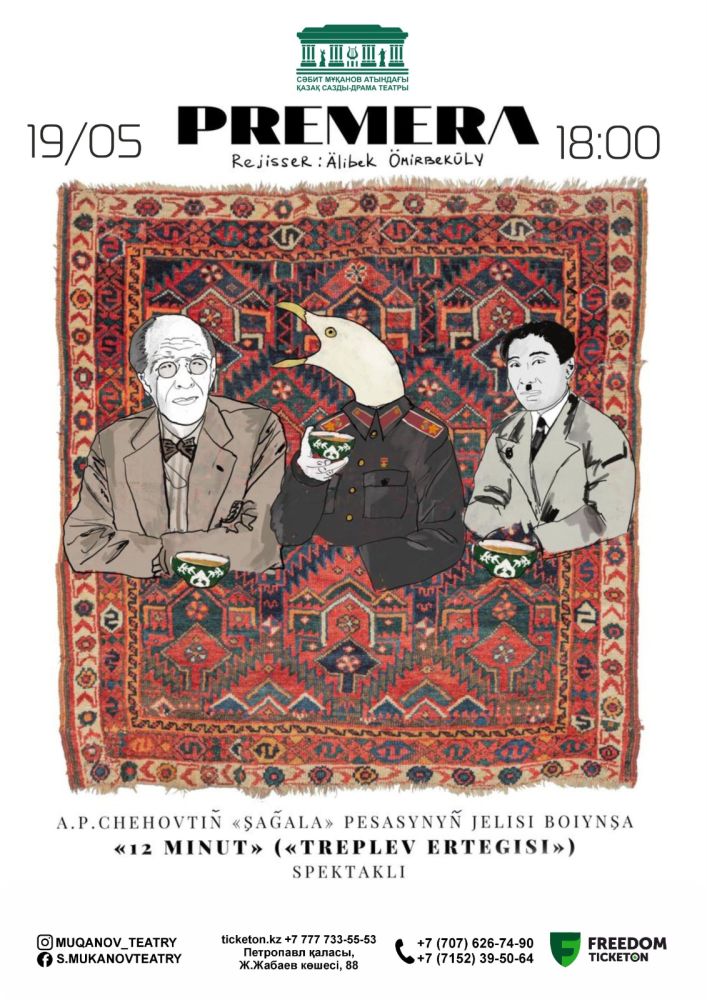/комедия/ А.П.Чеховтің «Шағала» пьесасының желісі бойынша Режиссёрі: Ә.Өмірбекұлы 200 мың жылдан кейін не болады? Ештеңе, тек 200 мың жыл артта қалады. Жоғалмаған мәні мен тереңі әлі Қояды бәрі ескірмес қарт «шағаланы»…